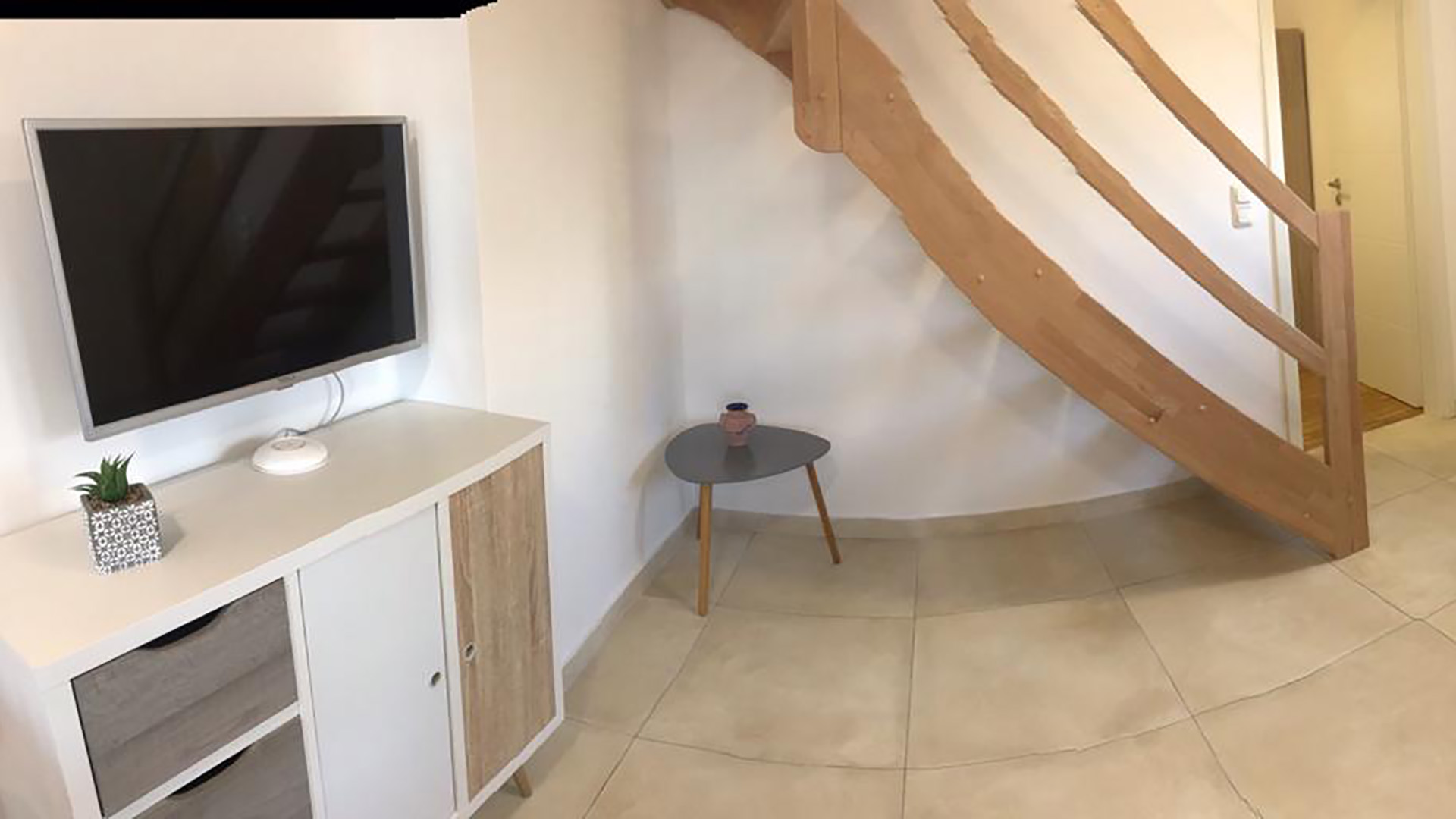 Der Wohnbereich mit Esstisch für bis zu fünf Personen sowie die Schlafcouch und Smart TV laden zum Entspannen ein. Die komplett ausgestattete Küche bietet Ihnen alles, was Sie für schöne gemeinsame Kochabende brauchen.