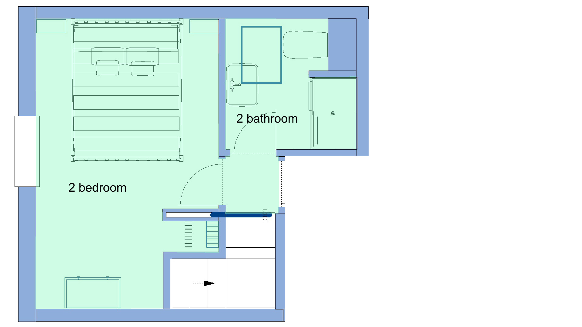 • oder zusätzlich mit einem weiteren Schlafzimmer mit Doppelbett und einem zweiten Badezimmer (für 3-5 Personen)