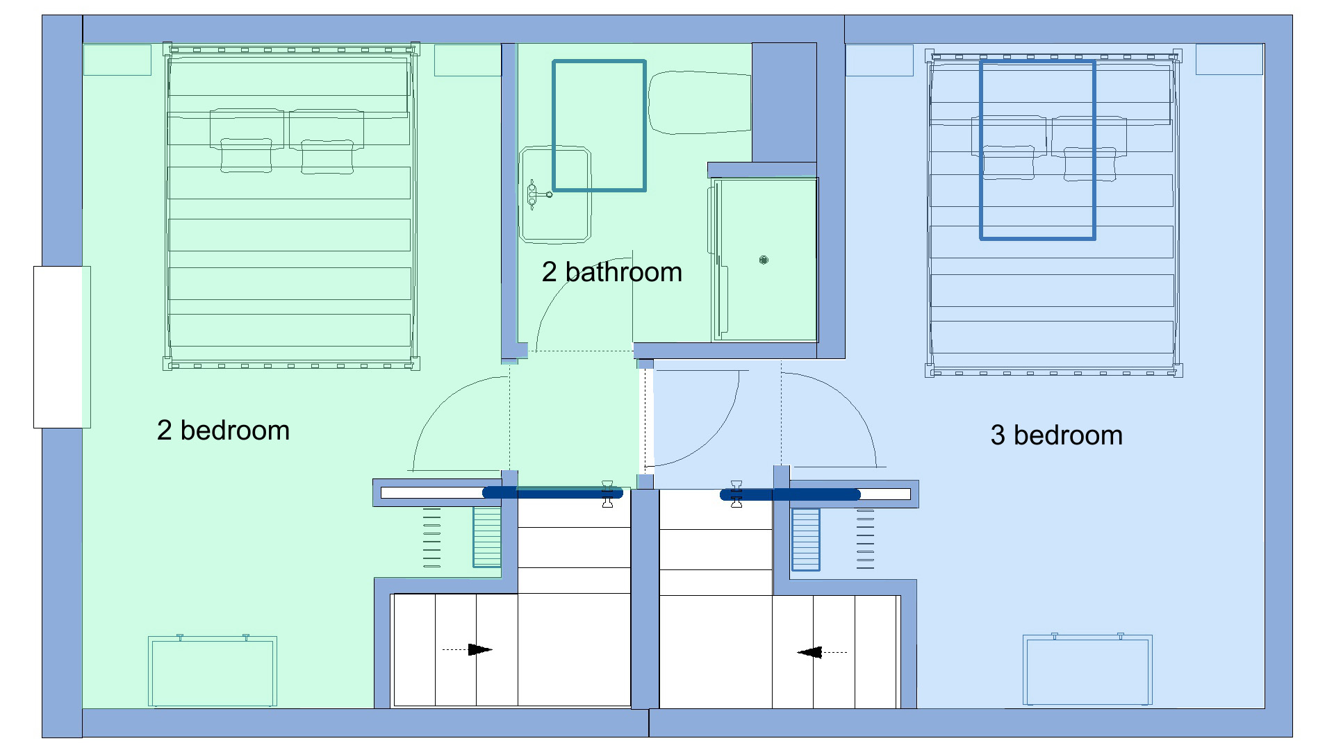 - oder zusätzlich mit einem weiteren Schlafzimmer mit Doppelbett und einem zweiten Badezimmer (für 3-5 Personen)